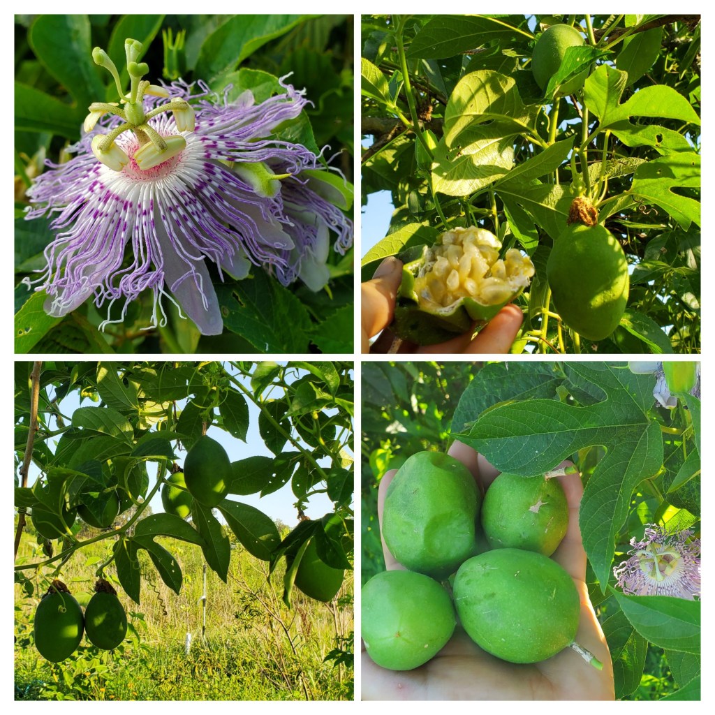 The fruit of the Wild Passion Vine is one of my absolute favorite things that can be foraged in my area of the Ozarks. I harvested my first handful of fruits yesterday which put a huge smile on my face. Just the smell of the ripe fruit is like a passport to a tropical paradise. Some people see this vine as a nuisance but they don’t realize the treasure it is! It grows wild all over my property and I still propagate it to plant in more desirable areas and train it up trellises to make harvesting easier. I have even planted some in our front garden to adorn the front of the house with its gorgeous flora. If you have Wild Passion Vine, consider yourself lucky. If you don’t, find some – you won’t regret it. Of course, always ask permission if you aren’t foraging on your own property, make sure the plants haven’t been sprayed with anything, and don’t take it all. Leave some plants/seeds/fruit to replenish and fulfill it’s role in nature so there will be future foraging opportunities for everyone. Also, never eat something that you can not identify with one hundred percent certainty.