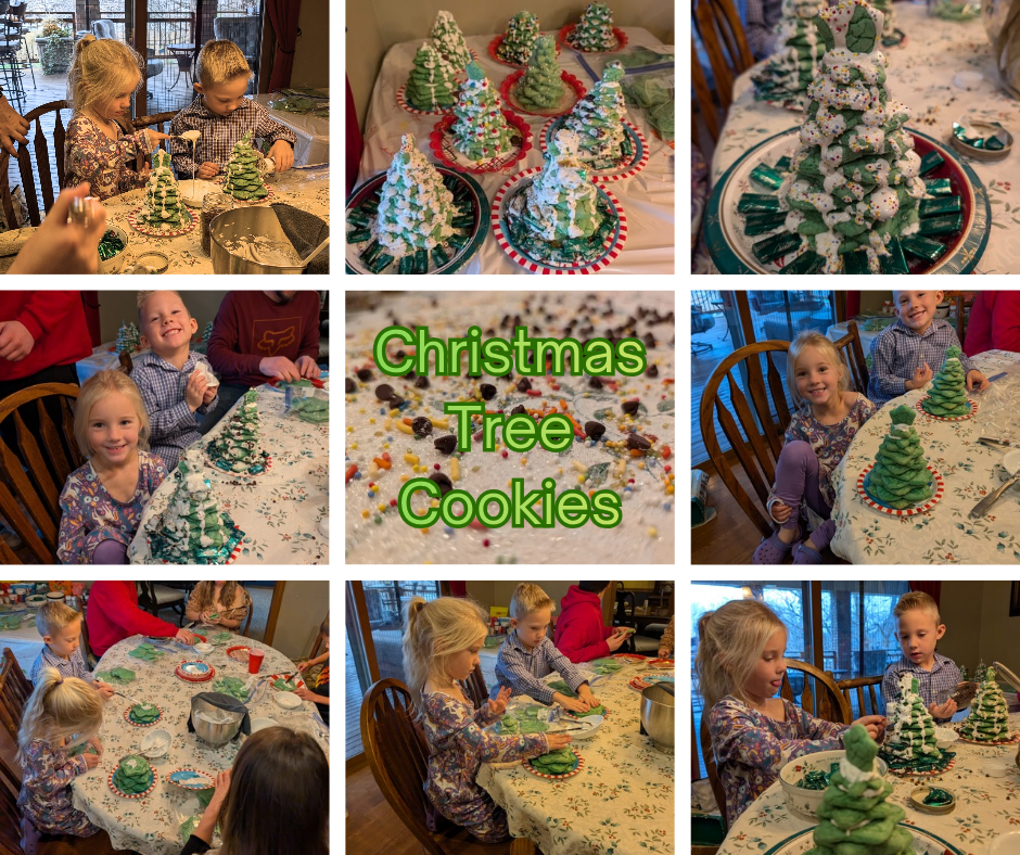 *This is a FAVORITE and probably the longest-lasting family Christmas tradition. Since at least the early 90s, our family has made these special cookies in the weeks preceding Christmas and then given them to friends, family, and neighbors. The time spent with family assembling and decorating these is always fun and the joy on the faces of those receiving the trees is wonderful to see.