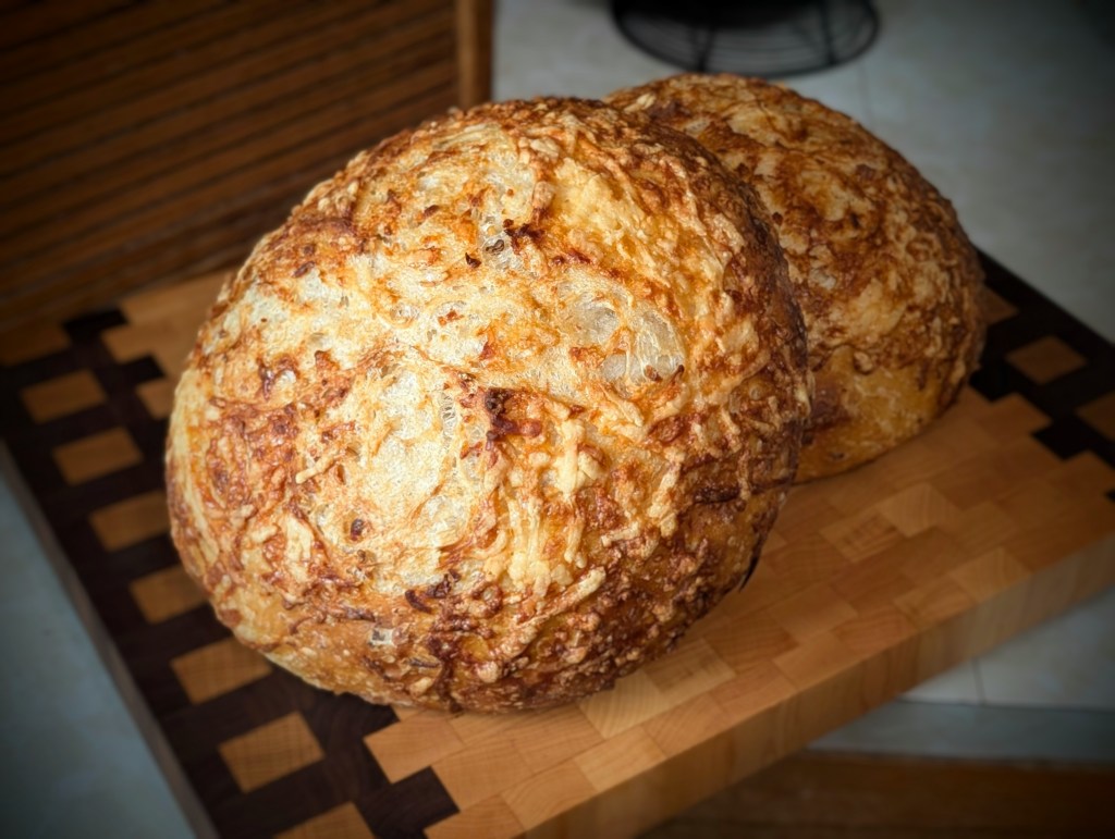 Optional Add-In: Work the oats in with your first set of stretch and folds and then work freshly shredded Asiago cheese in with your next set. I used about 4-5 oz of shredded Asiago for one loaf, saving some aside to line the banneton with so it would be embedded into the top of the loaf. So, so good!